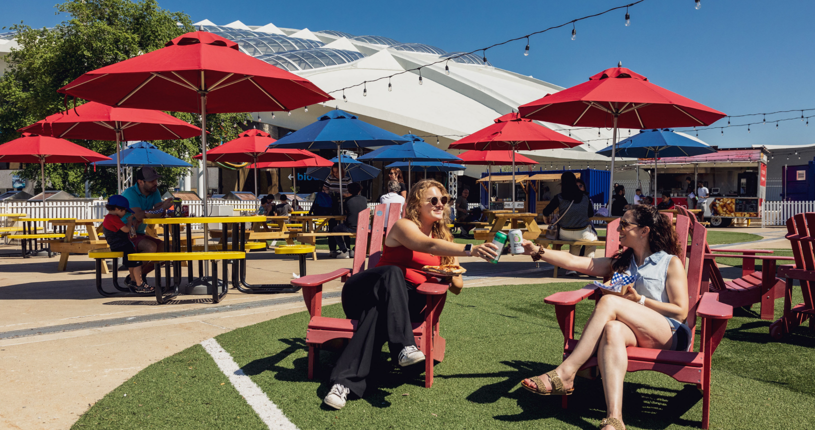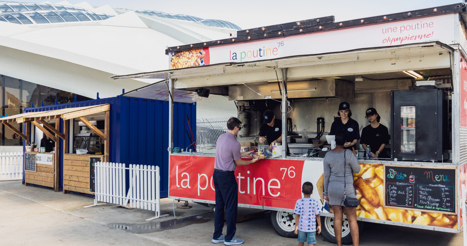 Îlots76 est une terrasse conviviale située au pied de la Tour du Stade Olympique. Elle rassemble plusieurs kiosques alimentaires offrant une variété d’options dans une ambiance estivale et animée.Les employés assurent l’animation, la sécurité et le service aux visiteurs.